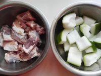 2.排骨洗净切开,冬瓜洗净去瓤,带着皮,切成小块