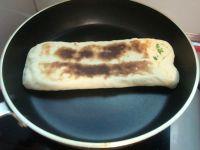 11.擀好的面饼放入煎锅里,盖上盖子,小火煎熟。