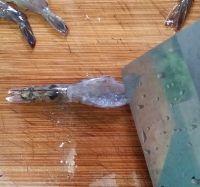 2、虾身开背时需小心翼翼不要剖断,否则虾身易散不成型