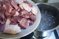 1.鸭剁成大块,入沸水中煮5分钟后捞起,再剁成比拇指大一点的块状;