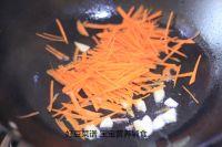 13.13. 锅中倒入少许底油,下入蒜爆香,再下入胡萝卜翻炒一会。
