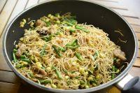 10.加入豆角和黄豆芽翻炒。