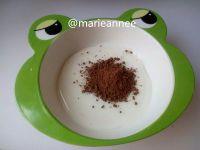 4.舀3汤匙煮好的牛奶放入碗内,加入可可粉搅拌均匀至无干粉颗粒