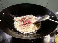 5.加入牛肉,炒到牛肉断生,颜色变白后盛出备用。