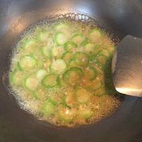 2.丝瓜去皮切片,蒜切片,松花蛋切小块咸鸭蛋只用蛋黄。